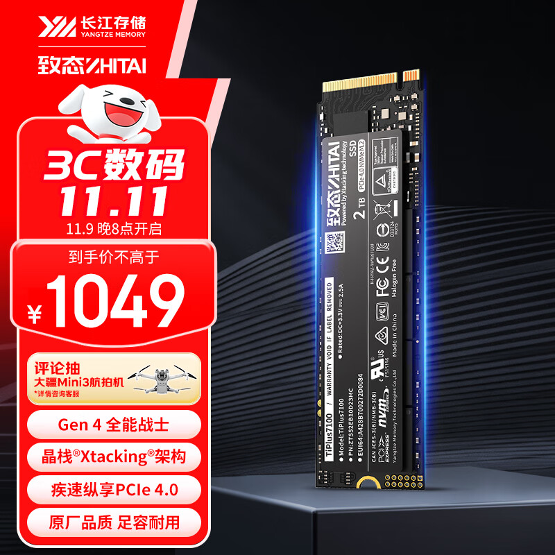 致态(ZhiTai)长江存储 1TB SSD固态硬盘 NVMe M.2接口 TiPlus7100系列