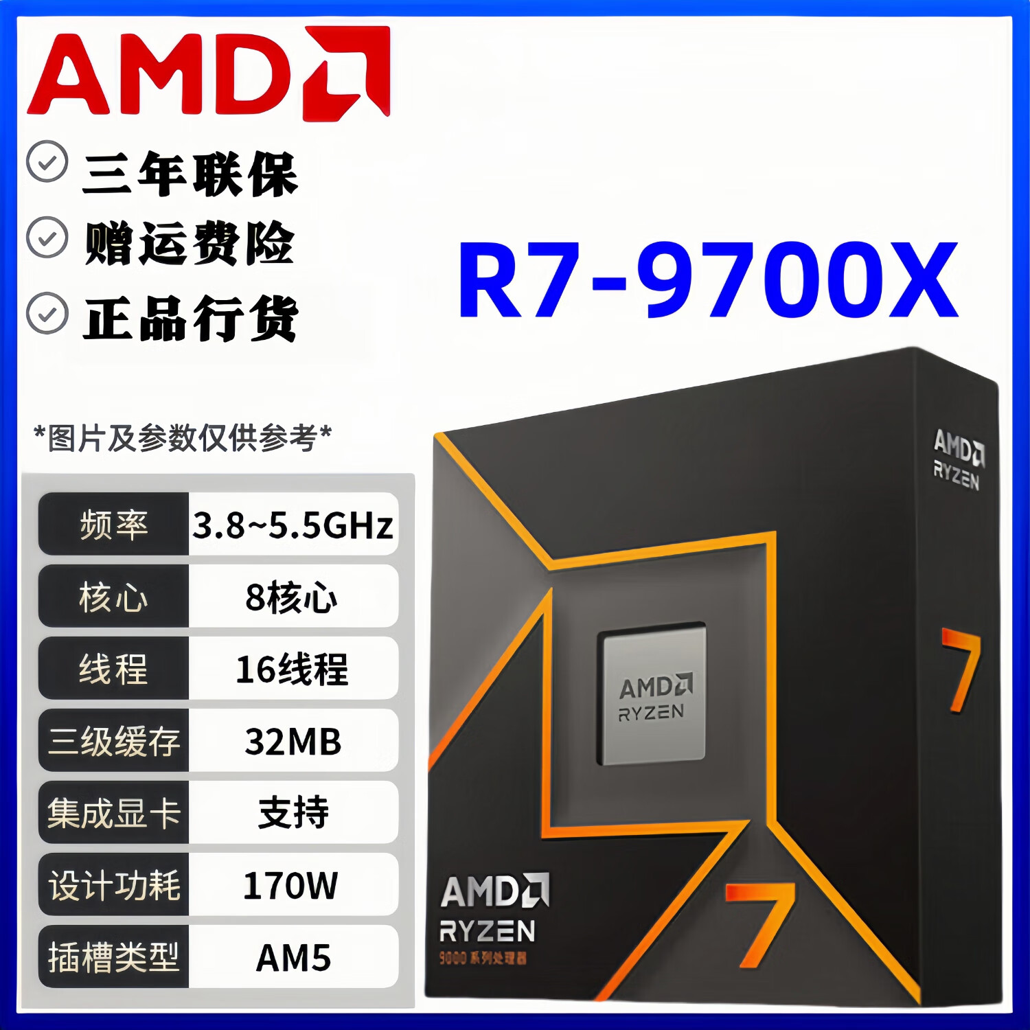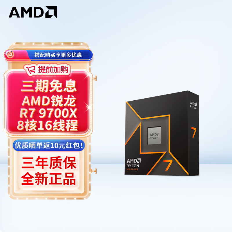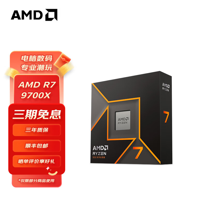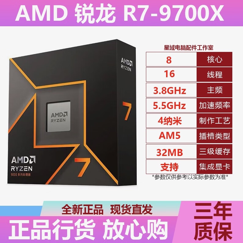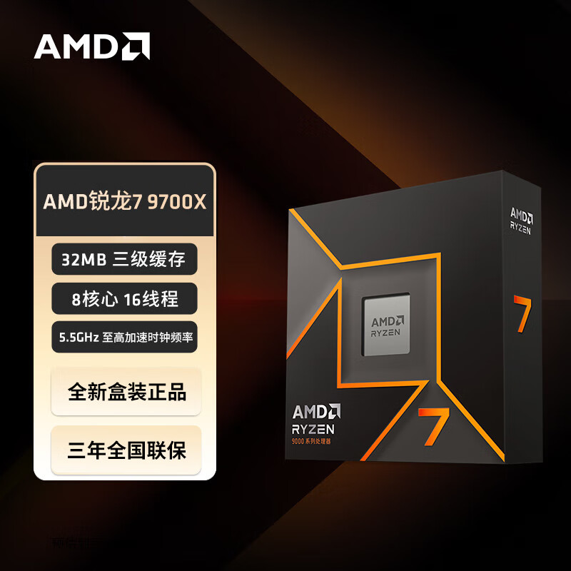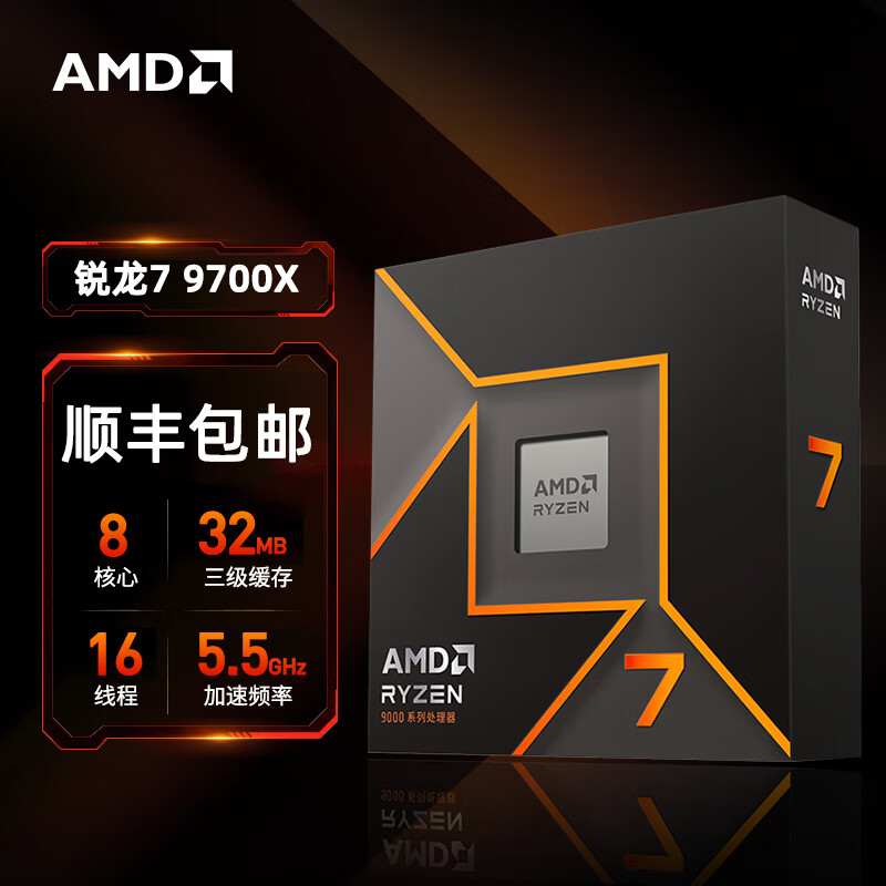 【双11】AMD R7-9800X3D 锐龙9代处理器 8核16线程 104MB游戏缓存 加速频率至高5.2GHz