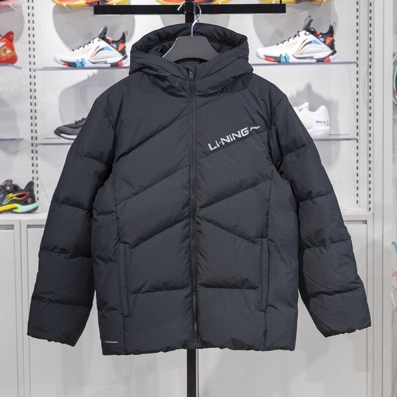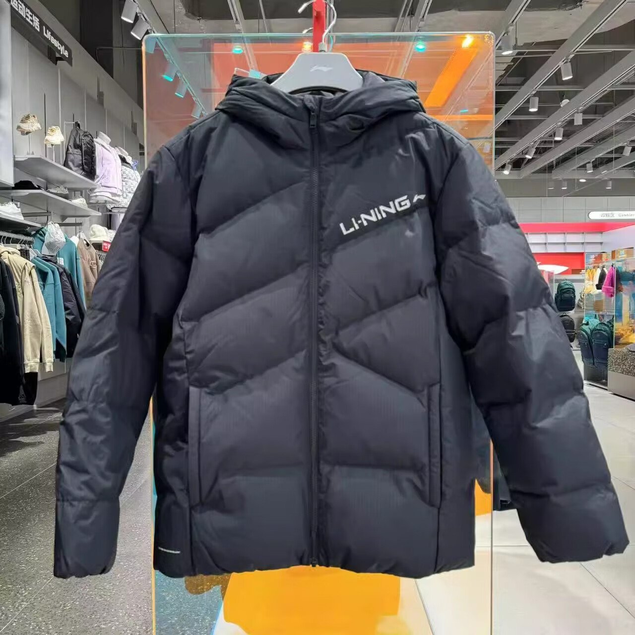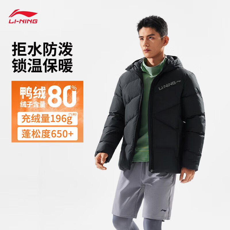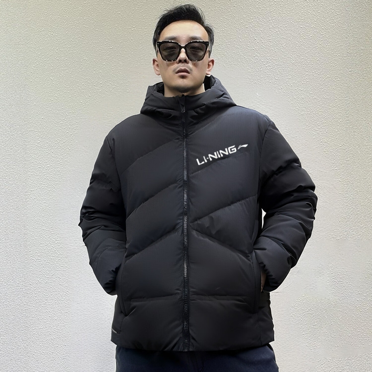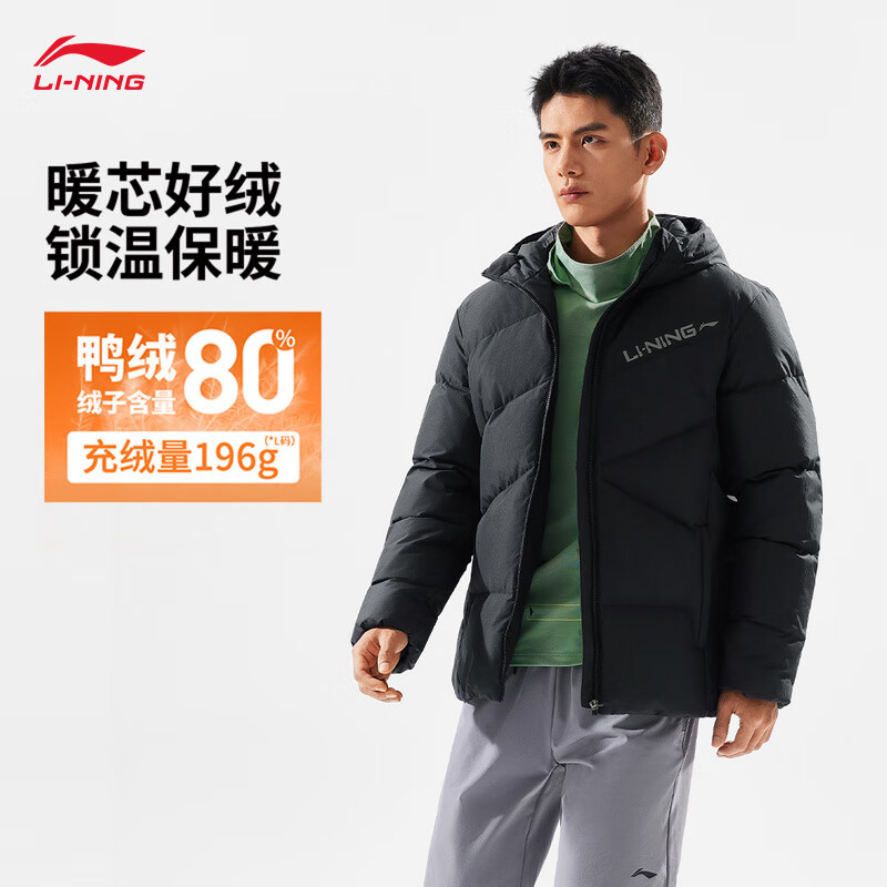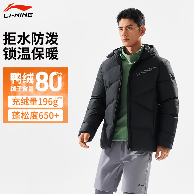 【肖战同款】Li Ning/李宁 男子健身系列品牌LOGO防风加厚抗寒锁温防泼水连帽拉链长袖立体裁剪修身热卖款拒水短款鸭绒羽绒服 AYMU079