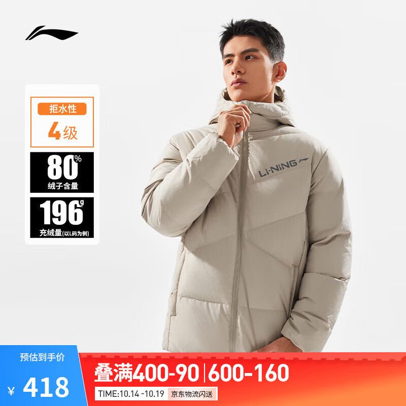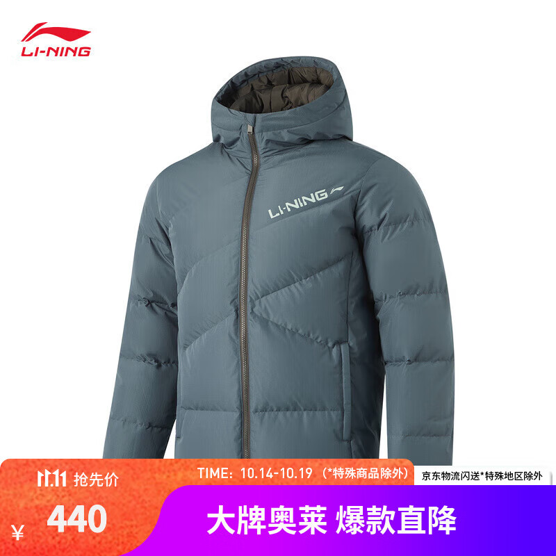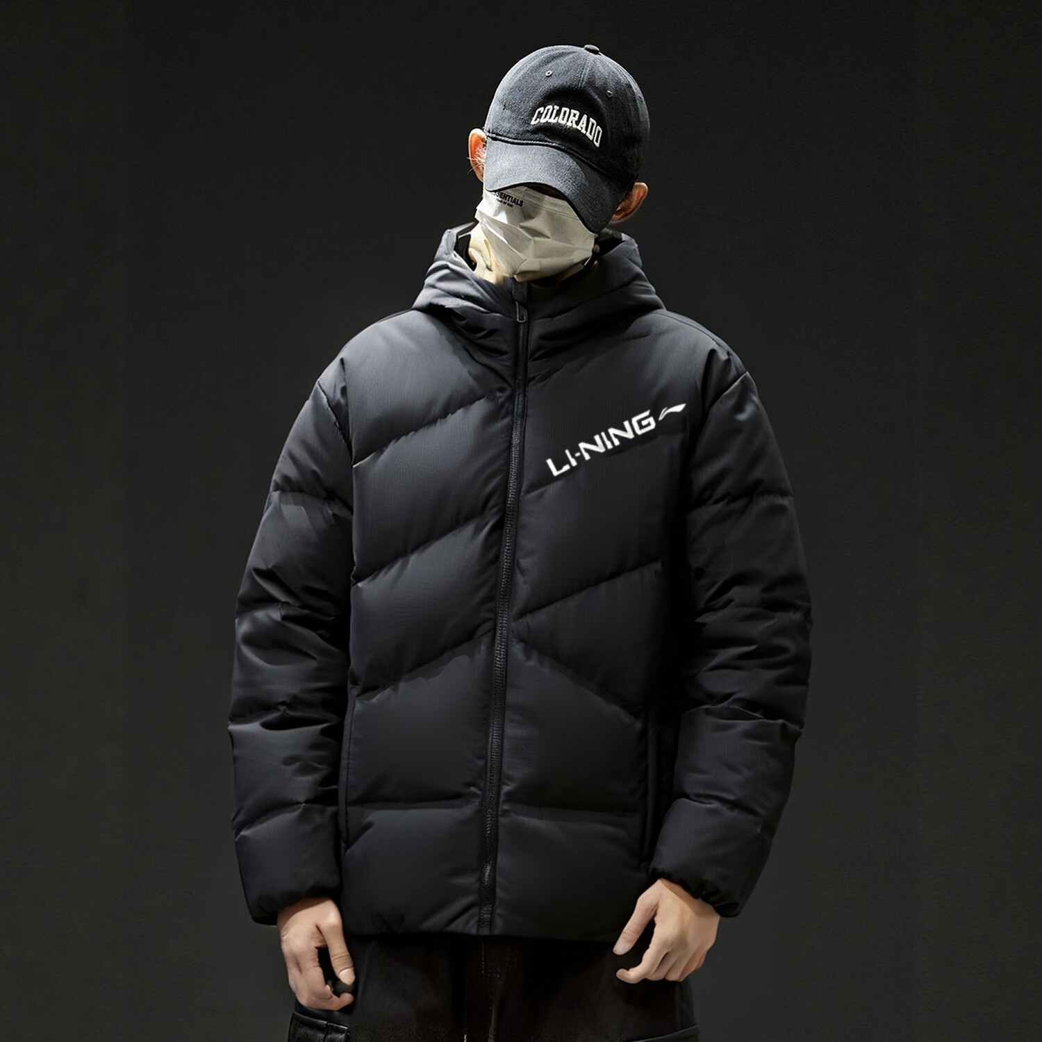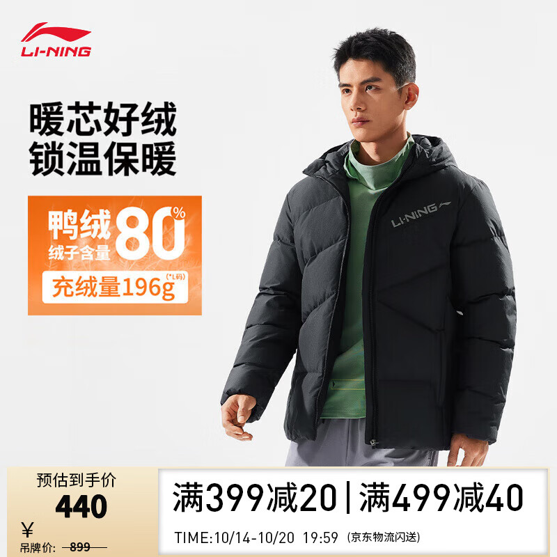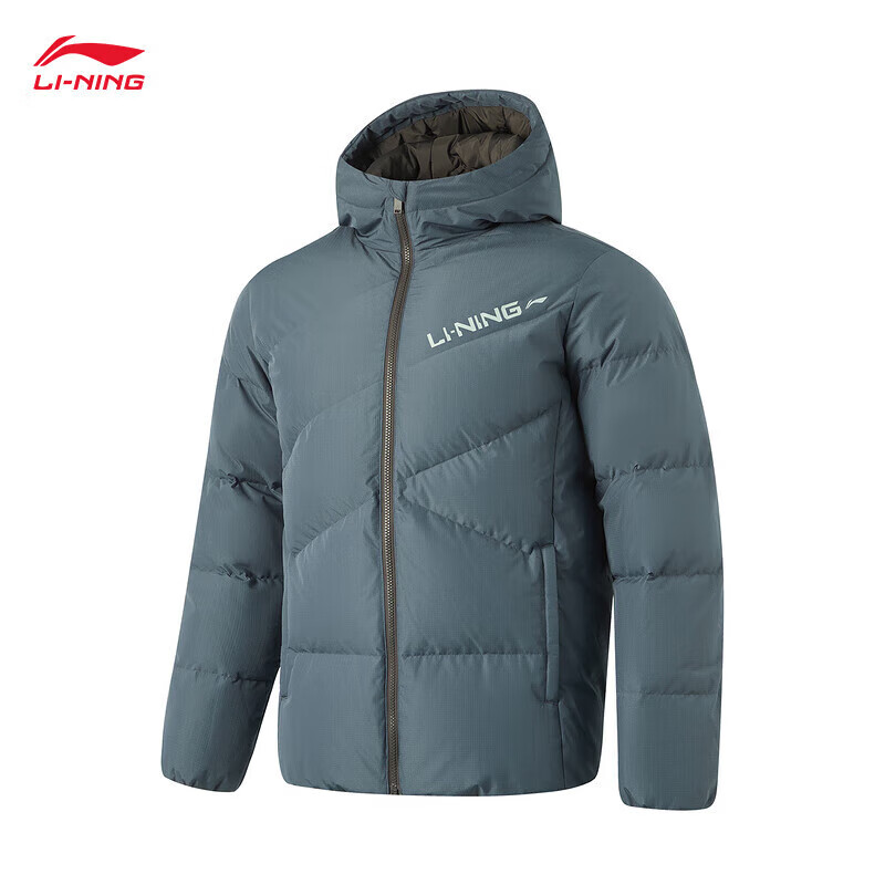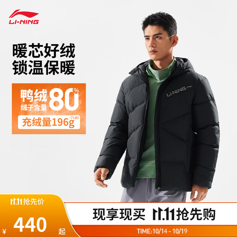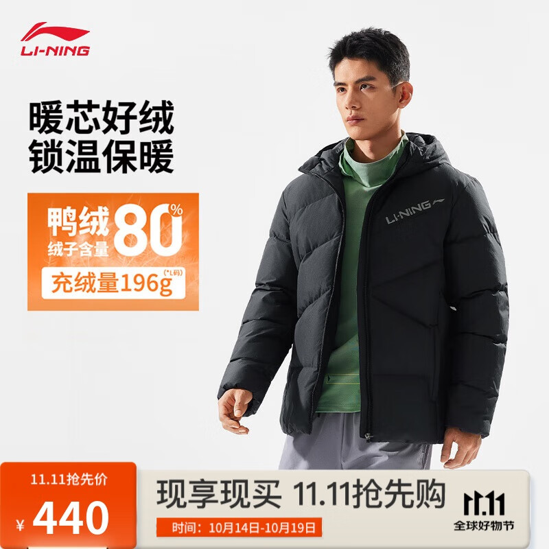 【肖战同款】Li Ning/李宁 男子健身系列品牌LOGO防风加厚抗寒锁温防泼水连帽拉链长袖立体裁剪修身热卖款拒水短款鸭绒羽绒服 AYMU079