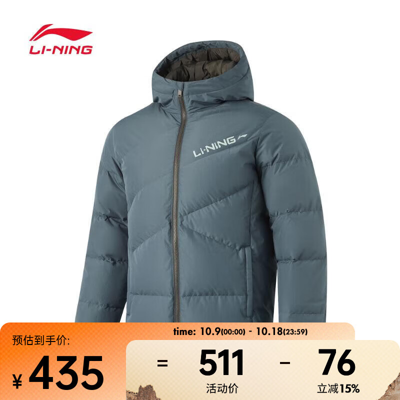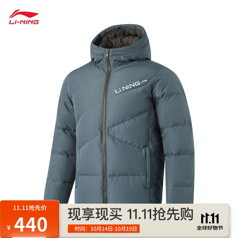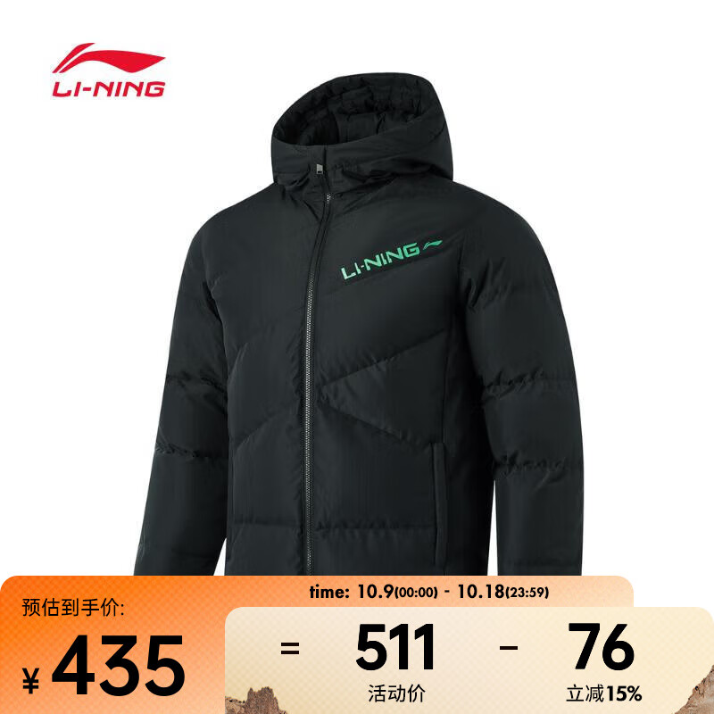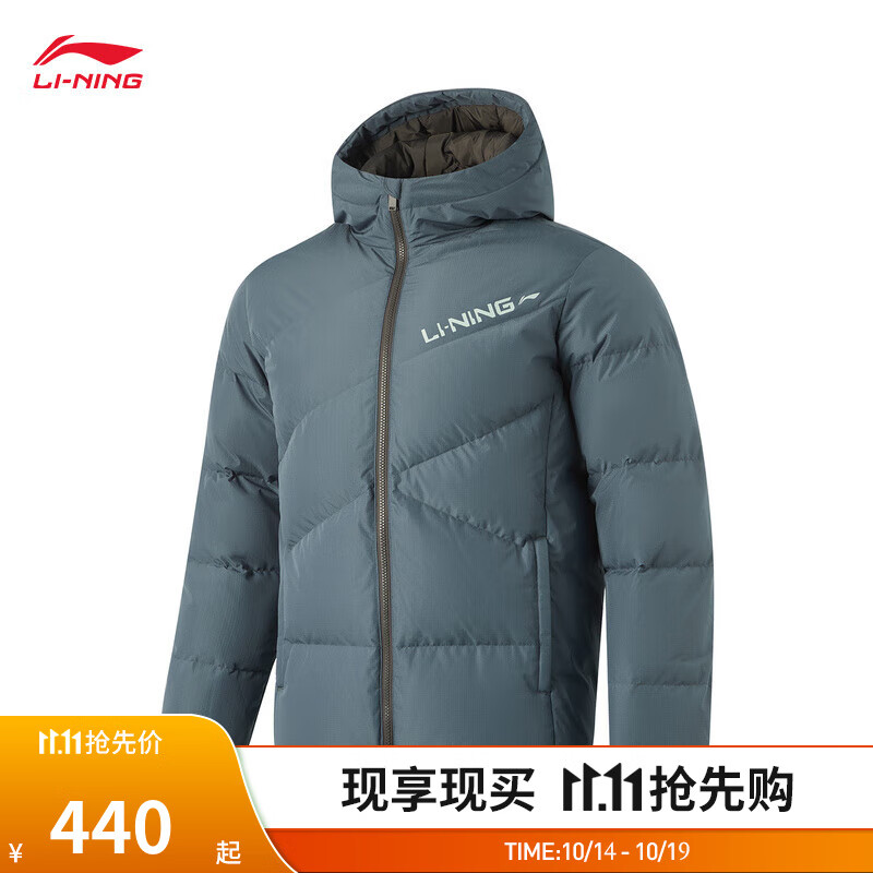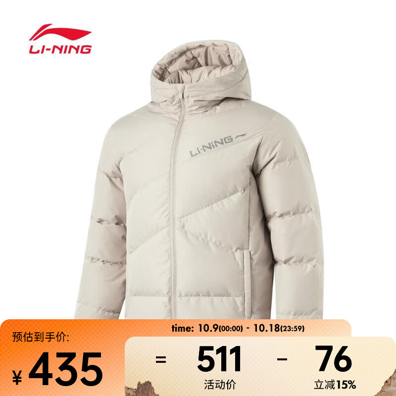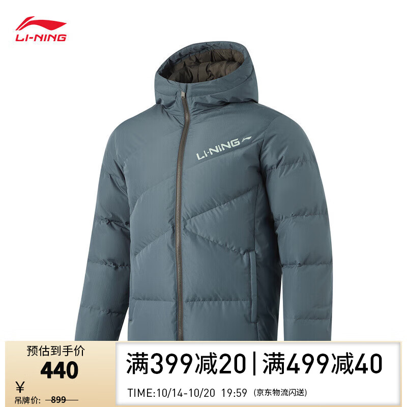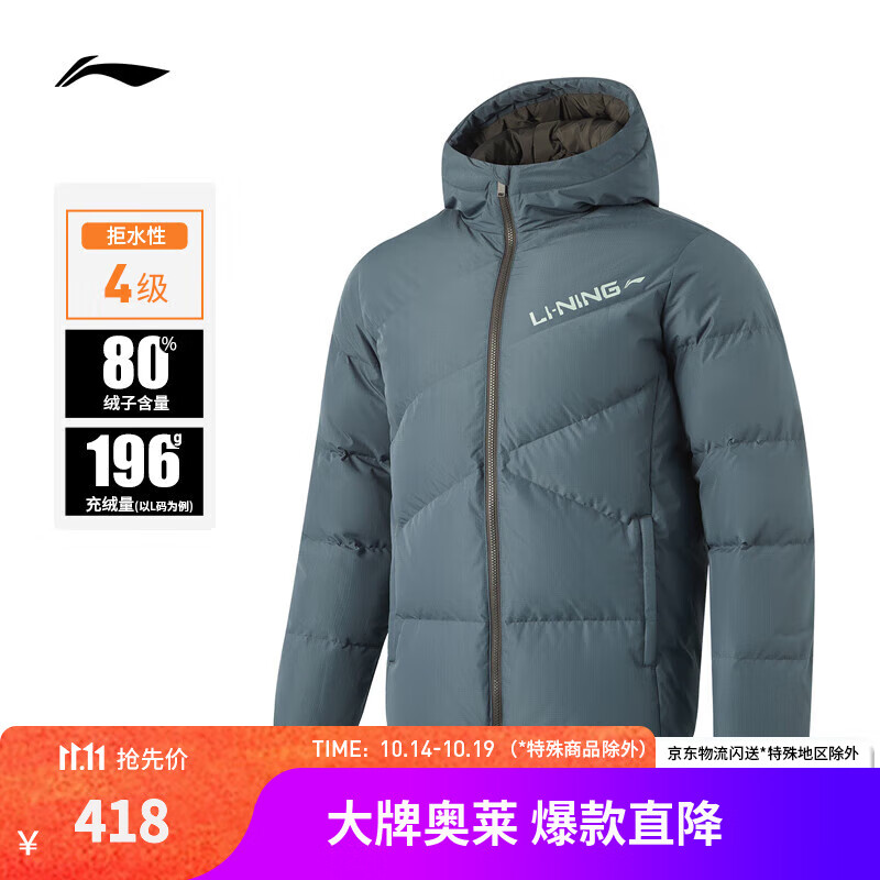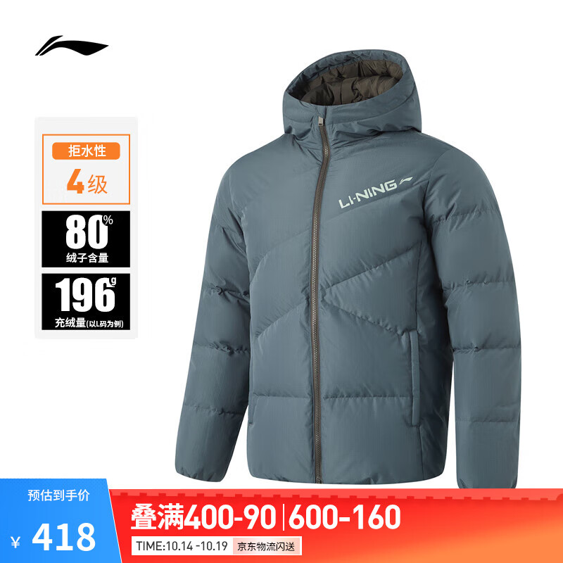 【肖战同款】Li Ning/李宁 男子健身系列品牌LOGO防风加厚抗寒锁温防泼水连帽拉链长袖立体裁剪修身热卖款拒水短款鸭绒羽绒服 AYMU079