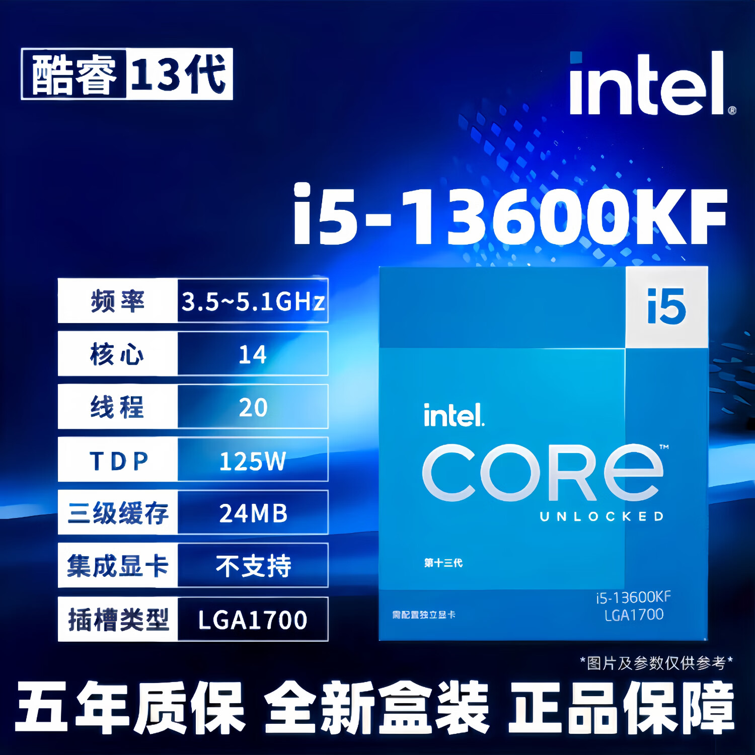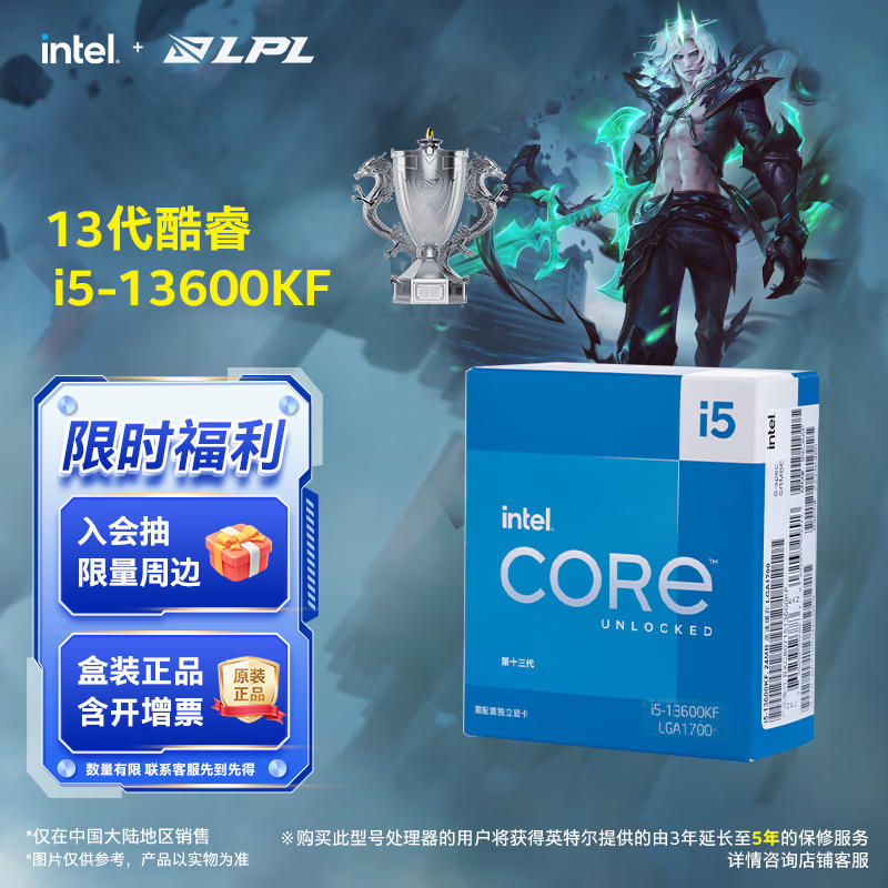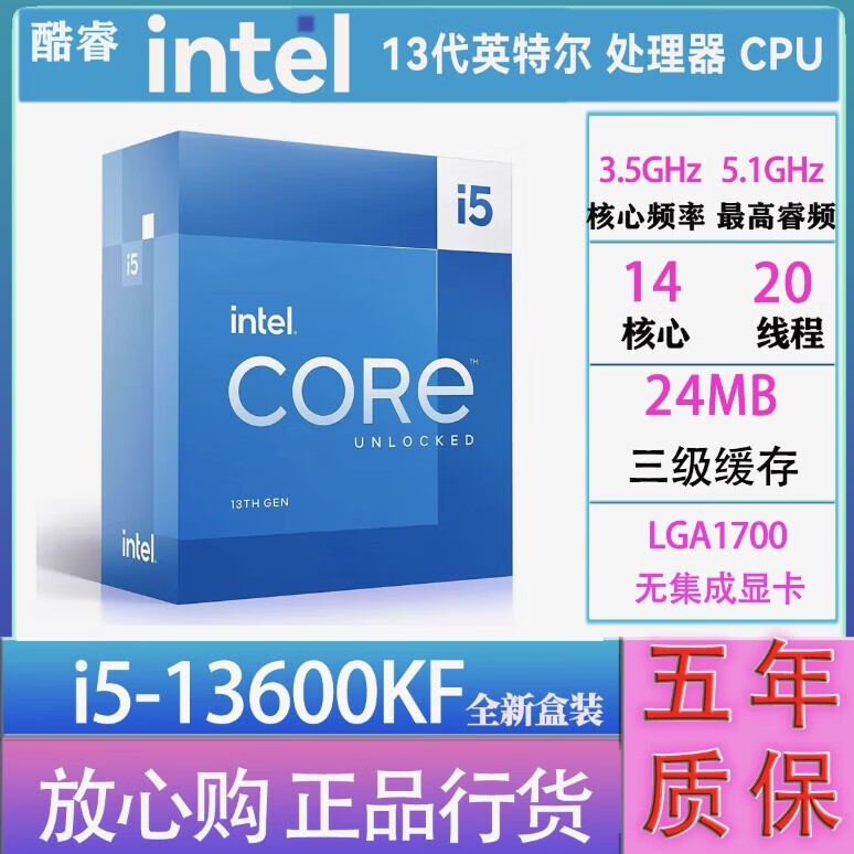 英特尔: i5-13600KF 酷睿13代CPU处理器 14核心20线程