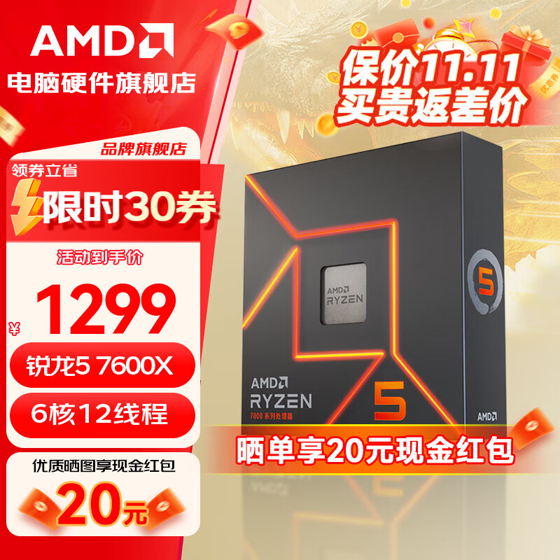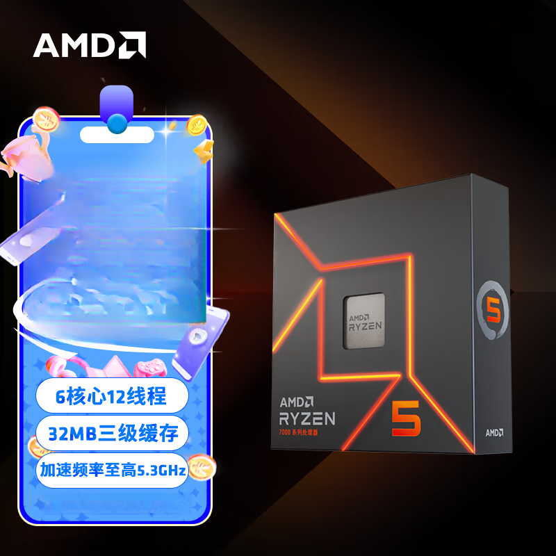 【双11】AMD R5 7500F 锐龙7代CPU处理器 低价神U
