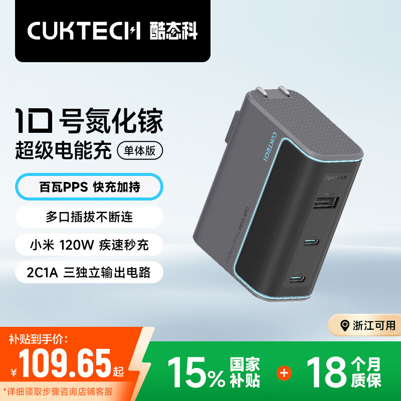 酷态科 10号充电器 AD1003 120W Type-c转Type-c