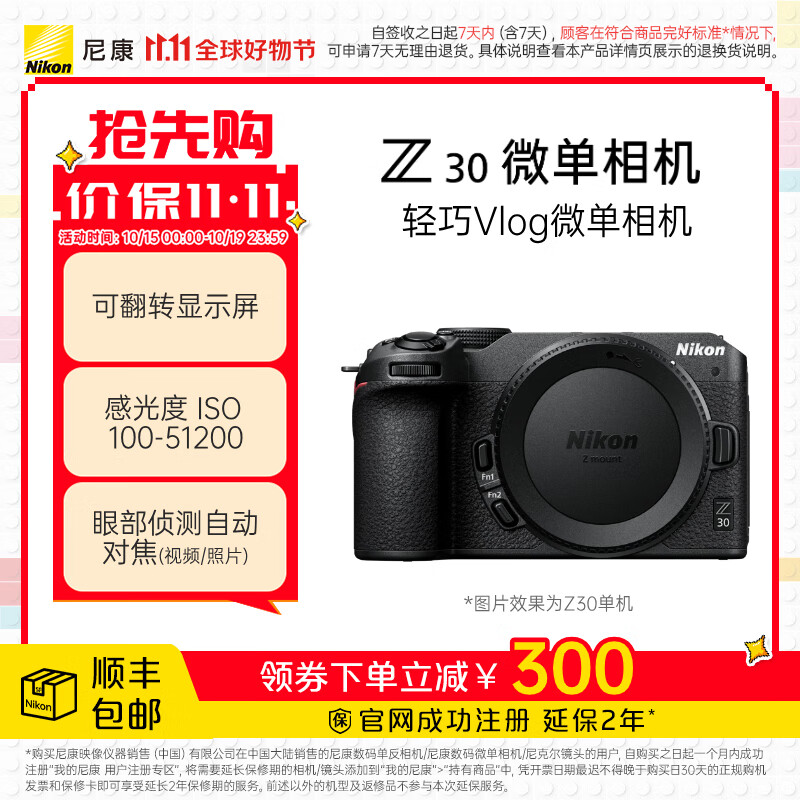 尼康: Z30 微单相机 学生新手入门相机 vlog APS-C画幅