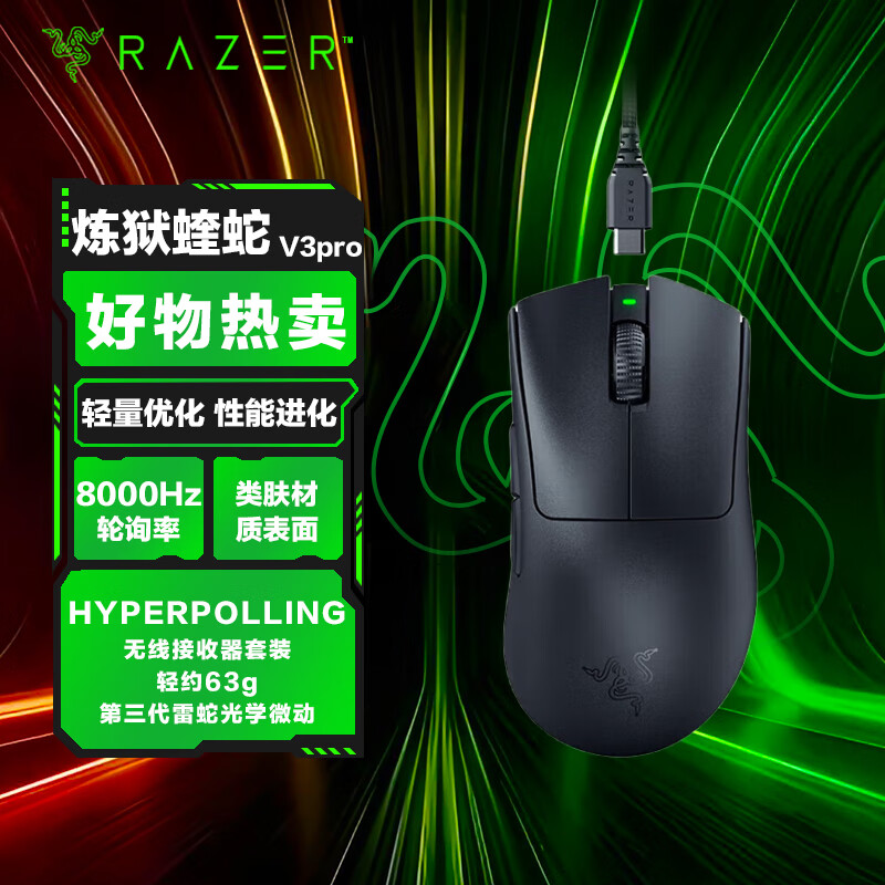 雷蛇: 毒蝰V3专业版 双模鼠标 有线+2.4G连接