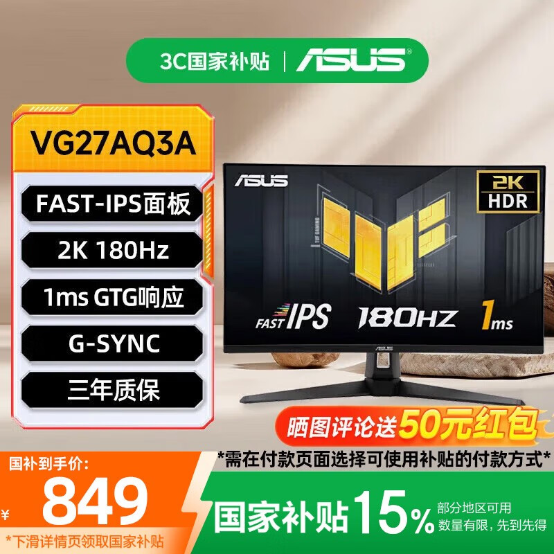 华硕: VG27AQ3A 27英寸 180hz 2K