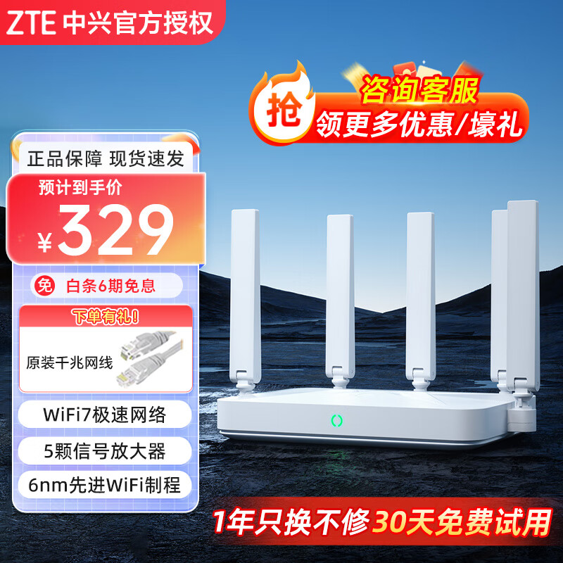 中兴: AX3000巡天版 千兆路由器 高速光纤