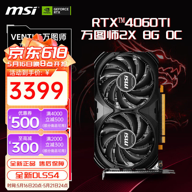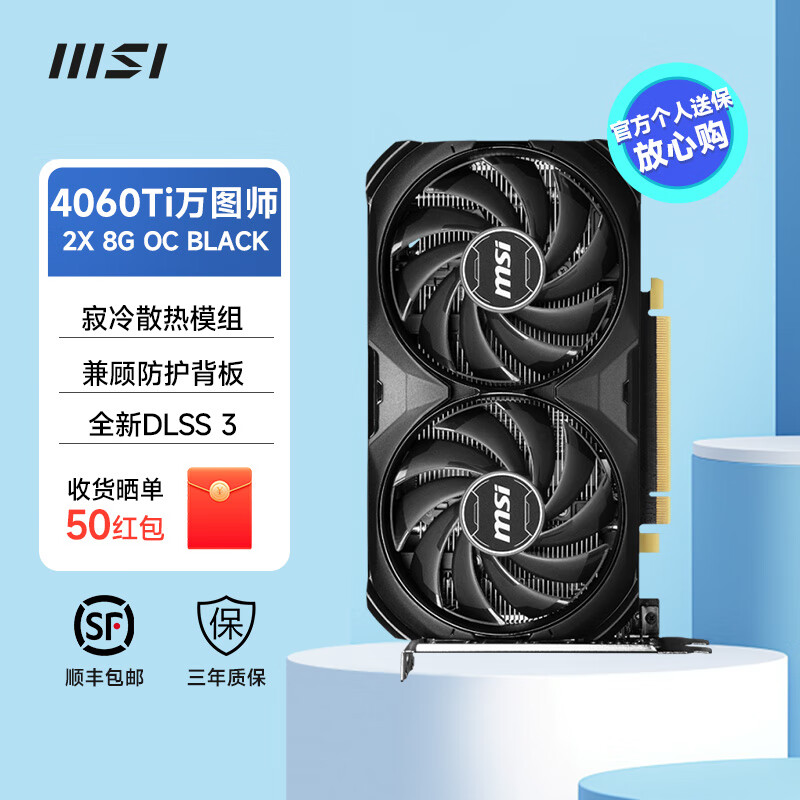 微星: RTX4060Ti系列独立显卡 8G/16G显存 万图师双风三风