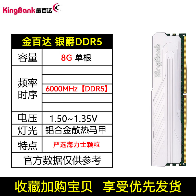 金百达: 银爵 DDR5 白色