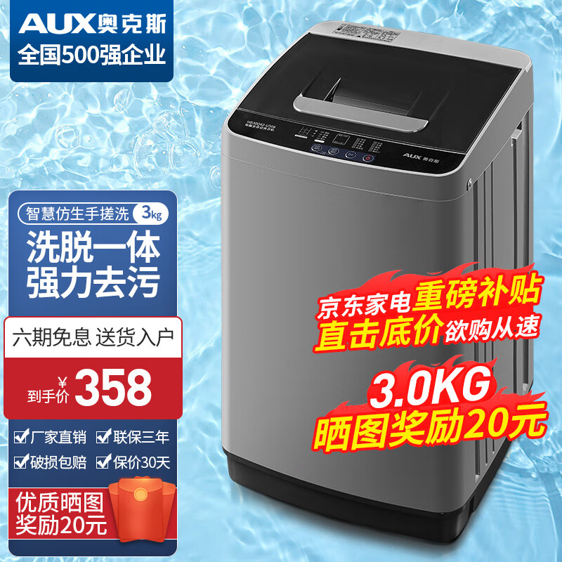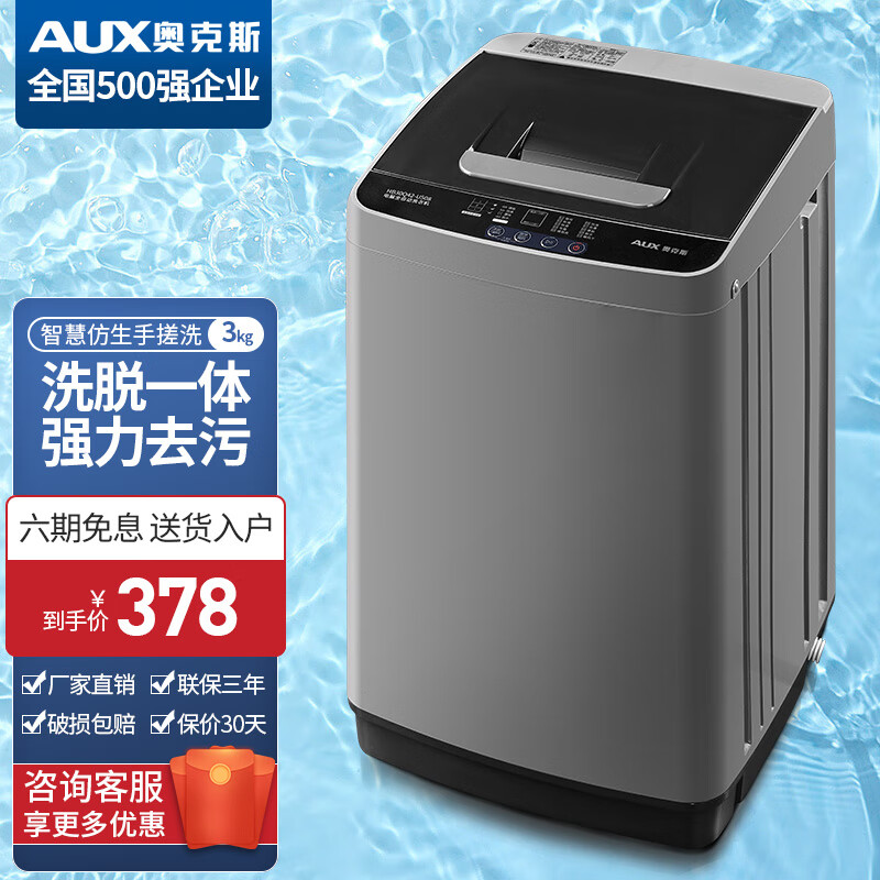 • 奥克斯HB30Q42-U508迷你小型婴儿童宝宝防缠绕家用全自动洗衣机不锈钢桶 透明银