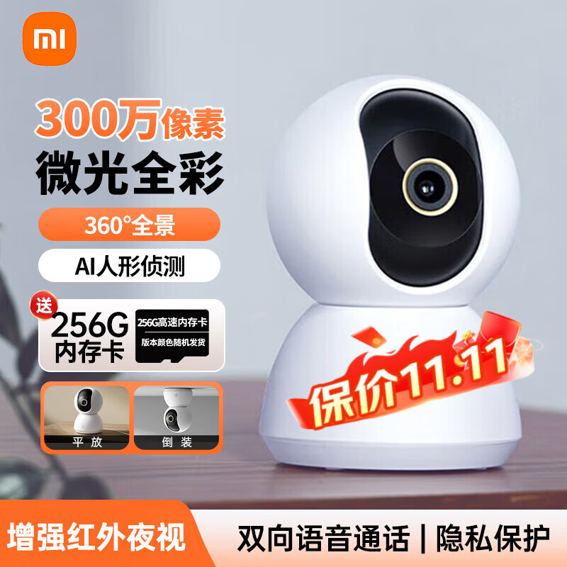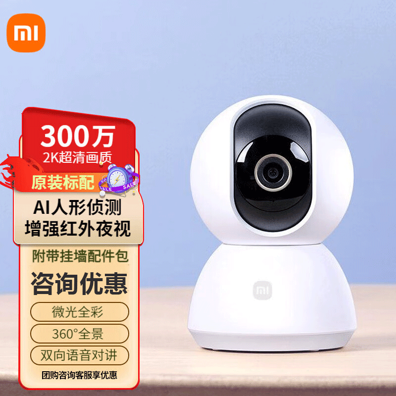 小米: 智能摄影机3云台版 监控摄影头 人形侦测