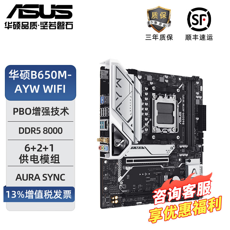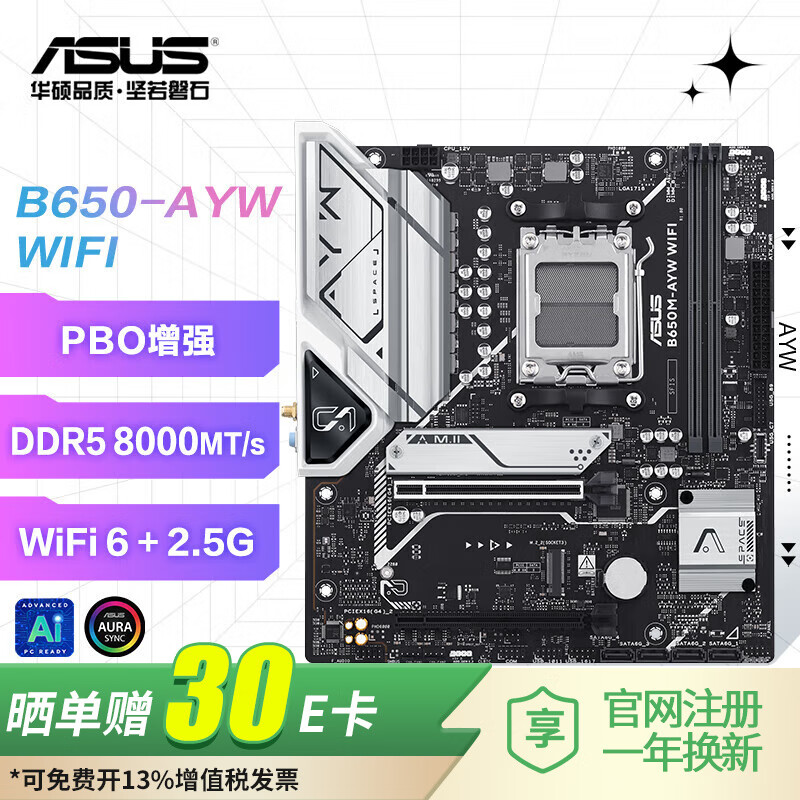 华硕: B650M系列芯片组 DDR5电脑主板 重炮手