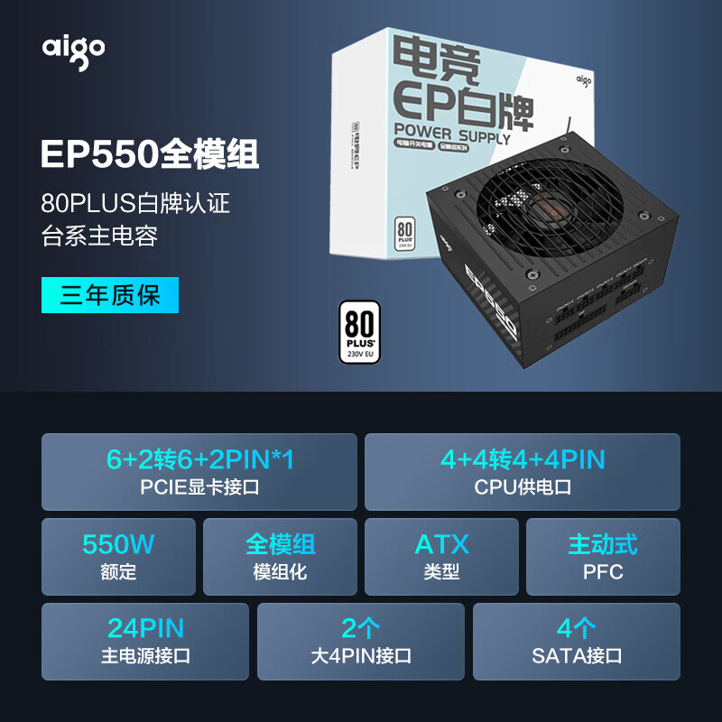 鑫谷: AM850W冰山版 80Plus白牌 全模组