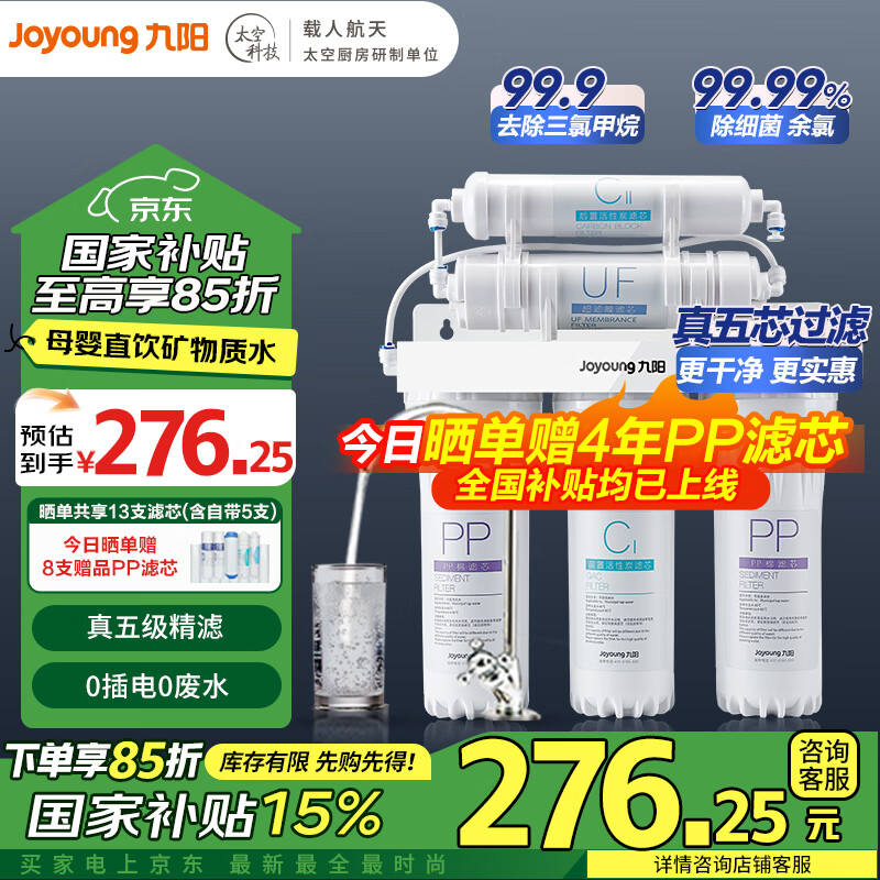 • 九阳自来水净水器家用直饮厨房净水机五级矿物质超滤前置过滤水器