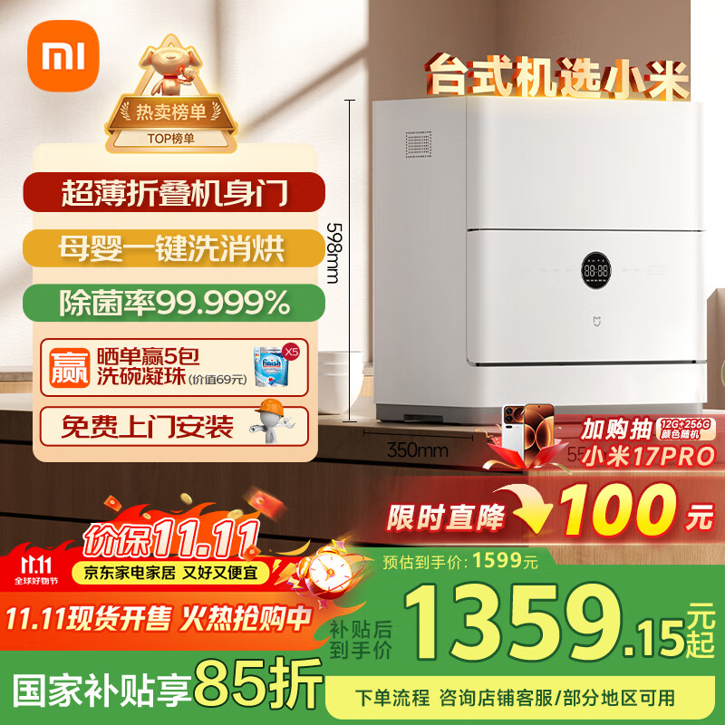 小米: 米家智能台式洗碗机S2 5套 超薄机身